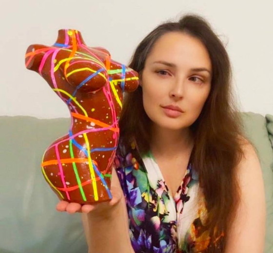 Statuetta fluorescente per body art. Realizzata a mano dall'artista.