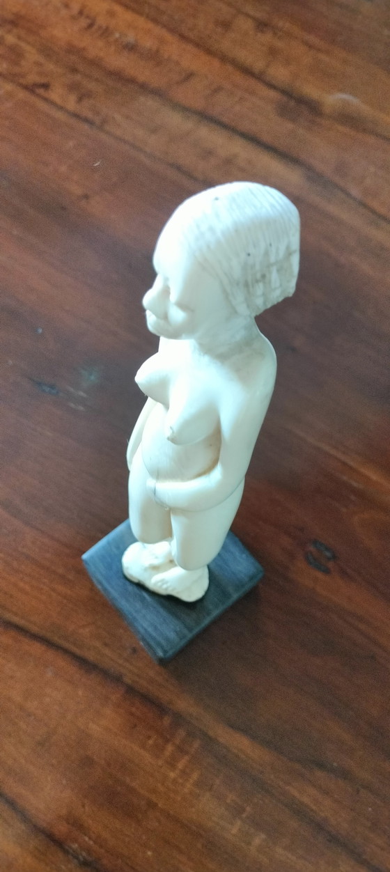 Questa splendida statuetta in avorio degli anni '50-'60 è un'autentica opera d'arte proveniente dal Congo, che incarna l'eleganza e la raffinatezza della scultura africana. La statuetta, raffigurante una figura femminile, poggia saldamente su una piccola base in legno ed emana una bellezza senza tempo.