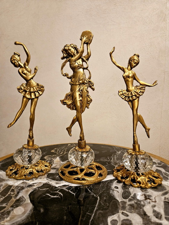 Statuette danzanti dorate - Set di 3 | Ottone e cristallo | Sculture di ballerine vintage di Saraya Abden