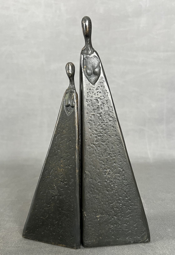 Due sculture in bronzo non firmate dell'artista sudafricano Sydney Kumalo (1935-1988). La scultura più grande misura 22 cm. La scultura più piccola misura 18 cm.