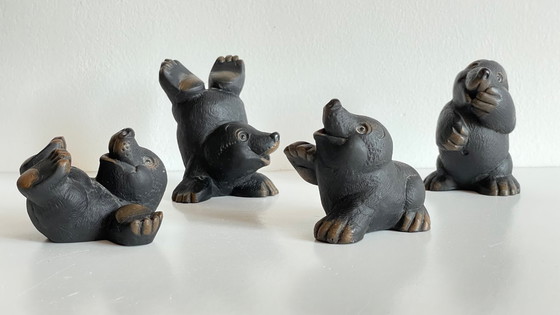 Delizioso set di 4 piccole talpe vintage di GILDE Handwerk - Germania, un set ricco di fascino e davvero decorativo.