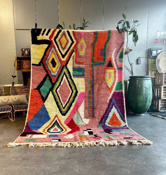 Gli interni marocchini sono ricchi di comfort e lusso. Aggiungi un tocco bohémien marocchino all'arredamento della tua casa con questo favoloso tappeto autentico, decorato con cura. Questo comodo tappeto shaggy porterà un'atmosfera intrigante alla tua esperienza quotidiana in casa.