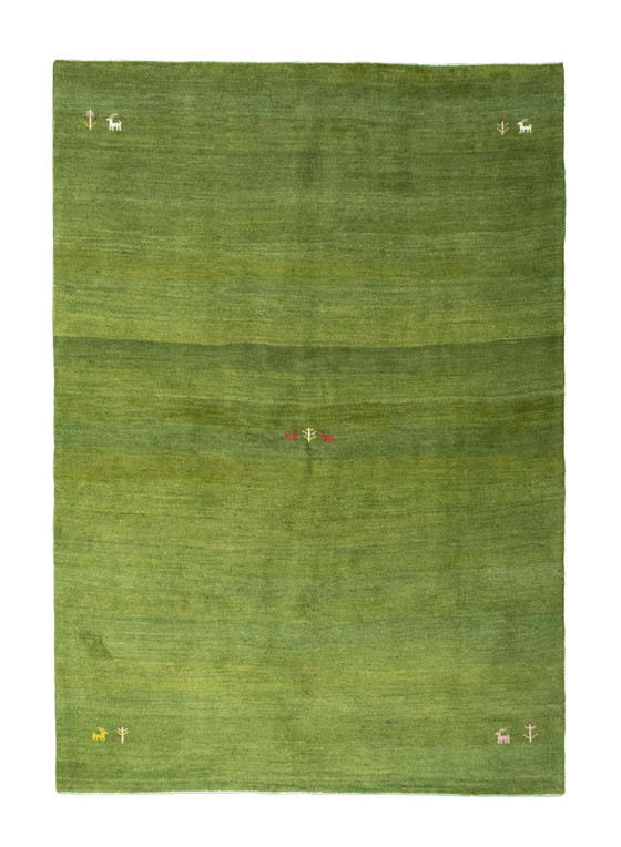 Questo splendido tappeto Gabbeh Loribaft in un intenso verde naturale emana tranquillità e armonia. La semplice combinazione di colori è completata da delicati motivi nomadi simbolici, tra cui piccoli animali e alberi che parlano della natura e della vita selvaggia. Origine: Annodato a mano da nomadi. Dimensioni: 245 x 170 cm. Materiale: 100% lana vergine di alta qualità. Colore: Tonalità di verde con motivi delicati e colorati. Design: Minimalista con delicati simboli Loribaft. Condizioni: Nuovo e mai usato. ✨ Caratteristiche speciali: Annodato strettamente e molto robusto - qualità Loribaft. Aura calda e rilassante. Design ispirato alla natura con significato simbolico. Ideale per soggiorni, camere da letto o sale di meditazione. 🛡️ Offriamo una spedizione sicura e assicurata per garantire che il tuo tappeto arrivi in tutta sicurezza. N.: 52363