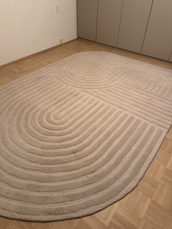 Tappeto 100% lana. Nuovo di zecca; è stato sotto il letto solo per due mesi. Il tappeto è a pelo corto e color sabbia. Misura 290x200 cm. Ce ne stiamo liberando perché vogliamo più colore.