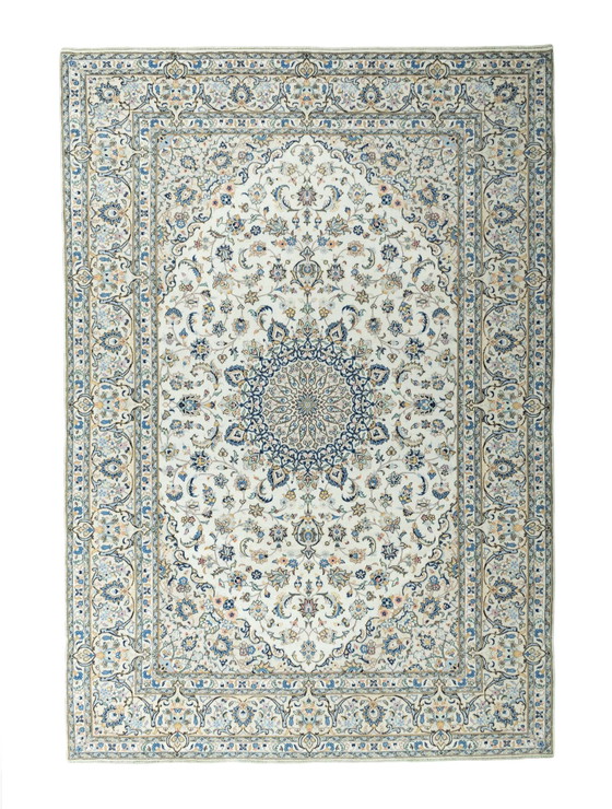 Questo grande tappeto orientale in sughero Kashan annodato a mano unisce l'eleganza classica a una finezza eccezionale. Il dettagliato motivo a medaglione floreale nei toni armoniosi del beige, blu e crema conferisce a qualsiasi ambiente un'aura sublime. Un vero pezzo da collezione e un punto culminante per spazi abitativi eleganti. Origine: Kashan Dimensioni: 354 x 241 cm Materiale del pelo: Lana di sughero (particolarmente morbida e di alta qualità) Ordito/Trama: Cotone Colore: Avorio, beige, blu, con delicati accenti in rosa e oro Disegno: Medaglione con una ricca cornice floreale Condizioni: Molto buone ✨ Caratteristiche speciali: Annodatura molto fine - eccellente fattura Design senza tempo - adatto ad interni moderni e classici Lussuosa lucentezza grazie al vello in lana di sughero di alta qualità Grande formato - ideale per soggiorni, saloni o sale di ricevimento 🛡️ Offriamo una spedizione sicura e assicurata per garantire che il tuo tappeto arrivi in sicurezza. N.: 55578