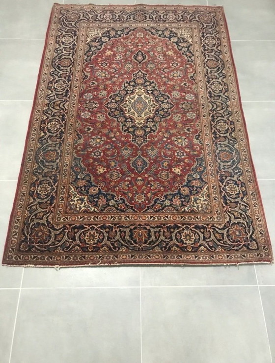 Questo splendido tappeto orientale vintage annodato a mano aggiunge un tocco di eleganza senza tempo a qualsiasi ambiente. Con le sue ricche tonalità di rosso e blu e il motivo floreale, cattura immediatamente l'attenzione. Realizzato in lana di alta qualità, garantisce morbidezza e durata nel tempo. Perfetto per creare un'atmosfera calda e accogliente nel soggiorno o nello studio.