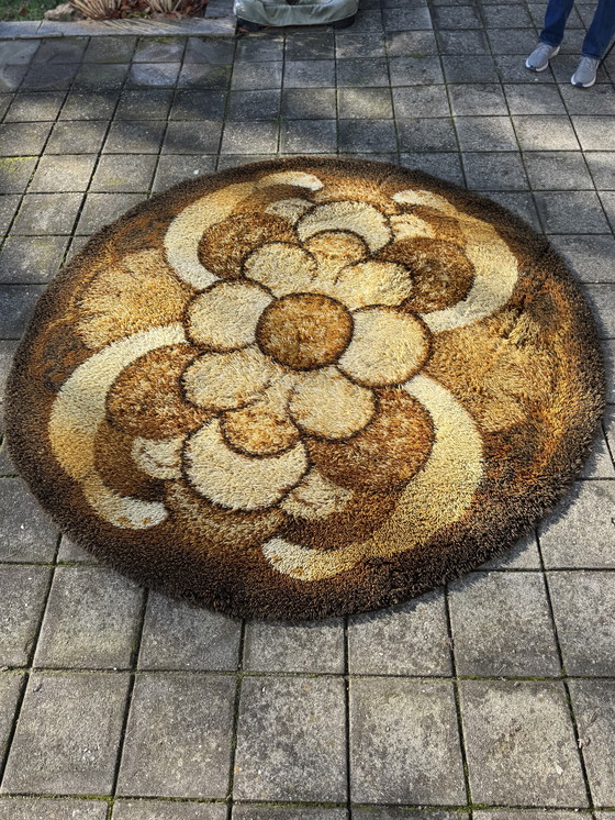 Vi presentiamo una splendida aggiunta al vostro spazio abitativo: il tappeto Shag Rotondo Grande Desso. Questo splendido pezzo è un esempio di eleganza vintage, caratterizzato da un'armoniosa miscela di toni del marrone e del beige che evocano un senso di calore e raffinatezza.