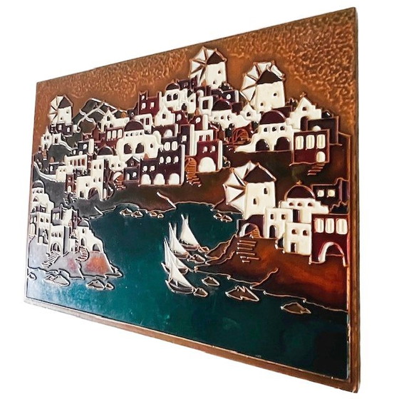 Targa da muro greca d'epoca di metà secolo, smalto su rame, dipinto AETHRA, anni '70