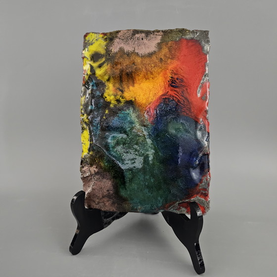 Splendida targa murale in Fat Lava della Germania Ovest, prodotta nella seconda metà del XX secolo da Vulkan Keramik / Ostara Fliesen. La targa murale è rossa, arancione, blu e verde. È alta 27 cm e larga 20 cm nel punto più largo. Pesa 1,7 kg. Le condizioni della targa murale sono eccellenti.
