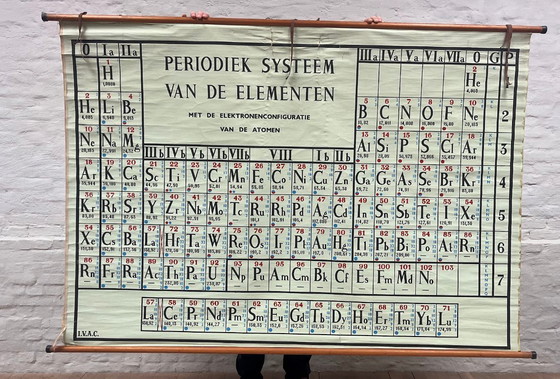 Scopri il fascino del passato con questa straordinaria tavola periodica degli elementi XXL vintage, realizzata da IVAC. Questo pezzo unico, realizzato in lino, offre uno sguardo autentico sulle scienze chimiche così come venivano insegnate un tempo nelle aule scolastiche.