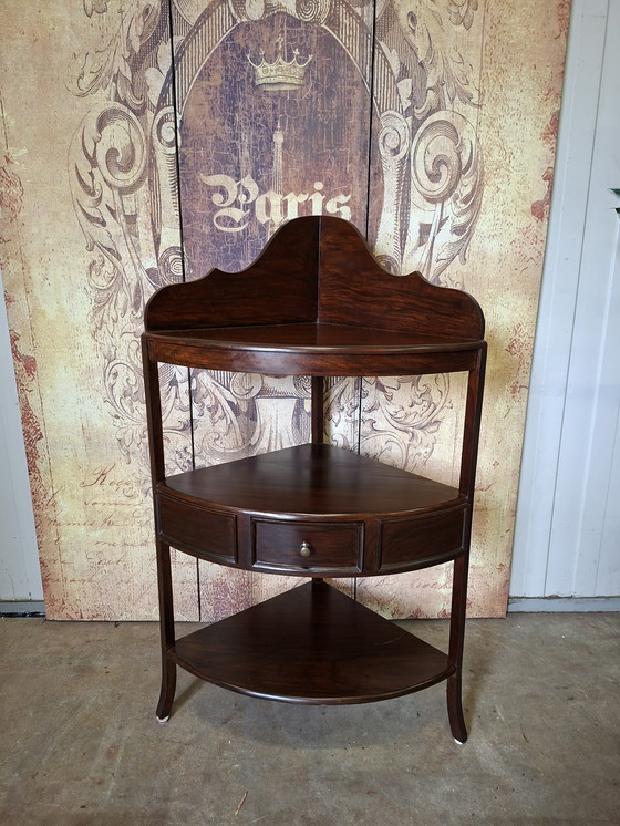Aggiungi un tocco di eleganza classica ai tuoi interni con questo splendido tavolino angolare inglese. Con il suo design raffinato e la ricca finitura in legno marrone, questo tavolo è un complemento perfetto per qualsiasi stanza. Che venga utilizzato come porta telefono o come tavolino, la sua versatilità e il suo stile sono ineguagliabili.
