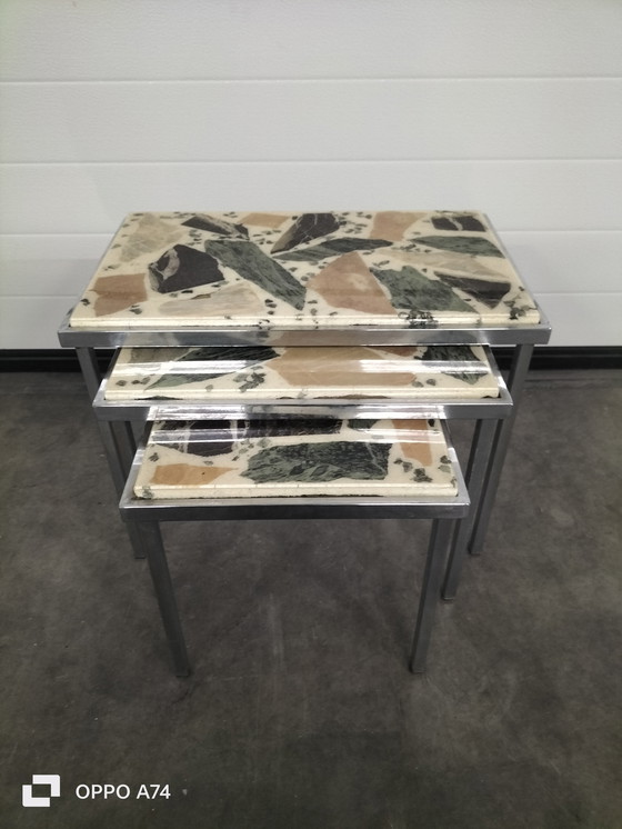 Tavolino ad incastro in marmo vintage, pietra onice