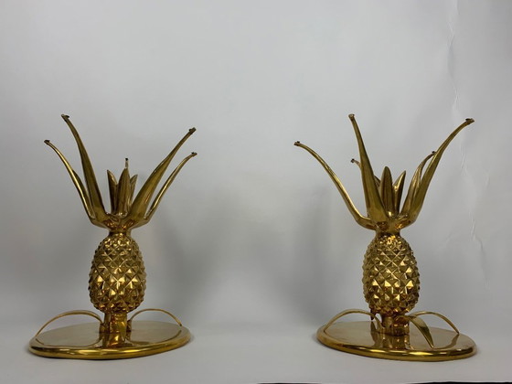 Questo tavolino ananas di metà secolo, risalente agli anni '70, è un'aggiunta unica ed elegante a qualsiasi spazio abitativo. Caratterizzato da una sorprendente finitura dorata, il tavolino è disegnato con un motivo ad ananas che incarna l'estetica giocosa ed elegante dell'epoca. Realizzato in metallo, offre resistenza e un tocco di fascino vintage. Perfetto per aggiungere un tocco retrò all'arredamento della vostra casa.