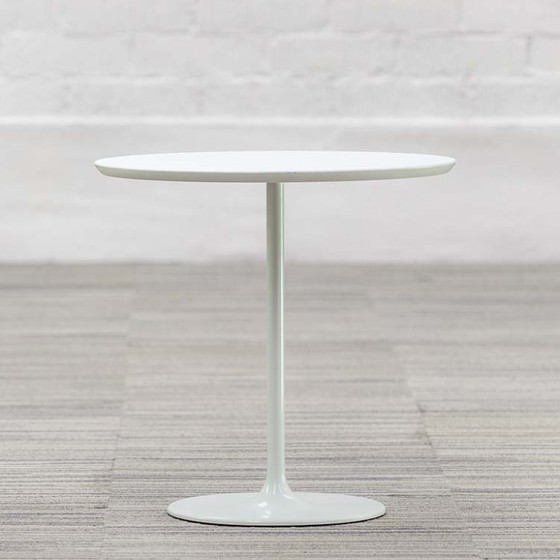 Tavolino basso disegnato da Lievore Altherr Molina nel 2004. DIZZIE è versatile. Che sia come tavolino in soggiorno o in corridoio, o come comodino in camera da letto, questo piccolo pezzo si adatta a qualsiasi ambiente e si armonizza con diversi stili d'arredo. Il piano in MDF leggermente ovale misura 51x47 cm ed è alto 50 cm. Disponibile anche nei colori bianco/azzurro (vedi D0232) e bianco/rosso (vedi D0234).