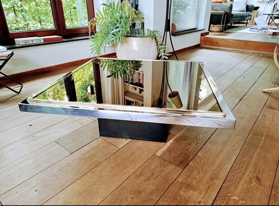 Questo tavolino Belgochrom Roger van Hevel è un sorprendente pezzo di design moderno. Il suo elegante piano a specchio e la struttura cromata creano un look sofisticato, perfetto per gli spazi abitativi contemporanei. La solida base garantisce stabilità, mentre la superficie riflettente aggiunge un tocco di eleganza.
