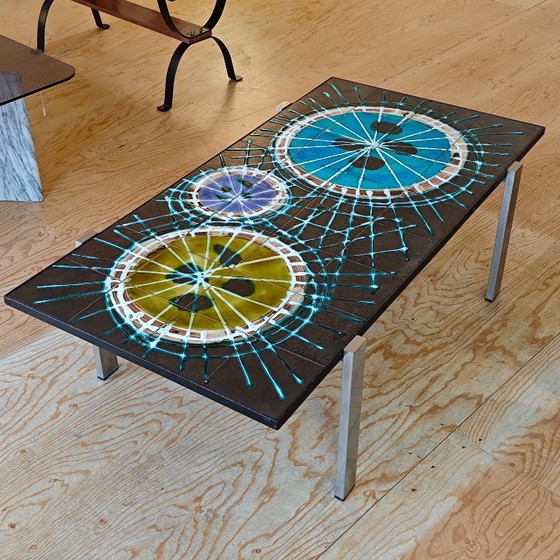 Questo splendido tavolo è ancora in buone condizioni vintage. Come potete vedere nella foto, una piastrella è crepata. Per il resto, questo splendido tavolo è in perfette condizioni! Il piano in piastrelle di ceramica smaltata a mano presenta un motivo unico, che lo rende un tavolino davvero unico.