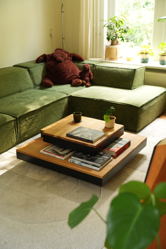 Tavolino basso fatto a mano, unico nel suo genere, in stile metà secolo / japandi. Effetto galleggiante.
