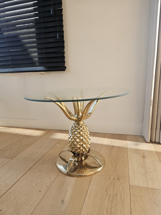 Tavolino da caffè Hollywood Regency Pineapple in ottone e vetro, Parigi, Francia, anni '70
