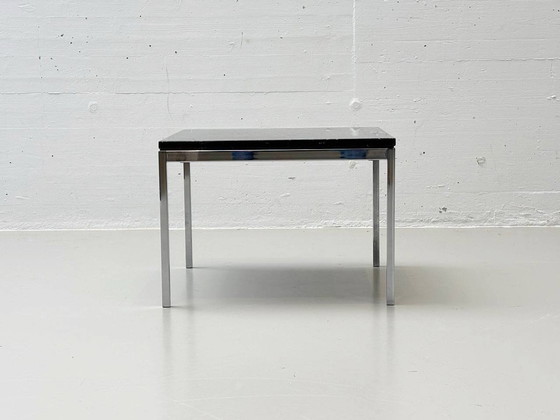 Questo elegante tavolino da caffè è il modello 2510T, progettato da Florence Knoll nel 1956 per Knoll Associates. La versione qui mostrata fa parte di una produzione successiva, intorno al 2016, realizzata dal rinomato produttore KnollStudio. Si tratta di un iconico oggetto di design Mid-Century Modern che colpisce per le sue linee pulite, i materiali di alta qualità e un'estetica funzionale senza tempo. Il tavolo è costituito da una robusta struttura in tubolare d'acciaio cromato a sezione quadrata con superficie satinata opaca. Questo non solo gli conferisce un tocco moderno e industriale, ma garantisce anche un'eccezionale robustezza. Il piano del tavolo è realizzato in elegante granito nero, che emana un aspetto particolarmente pregiato grazie alle sue sottili venature e alla superficie lucida. Le proporzioni pulite e il design minimalista rendono il tavolo un mobile versatile, che si adatti al soggiorno, all'ufficio o alla reception. Il logo KnollStudio e la firma di Florence Knoll sono discretamente incisi su una delle gambe del tavolo, sottolineando l'autenticità e il valore da collezione di questo mobile. Dimensioni: Lunghezza x Larghezza 60 x Altezza 43 cm - Ritiro dal lunedì al sabato (esclusi i giorni festivi) tra le 10:00 e le 19:00 su appuntamento. - Consegna? Certo, possibile in tutta la Svizzera! Basta chiedere il prezzo, che dipende dalla distanza. - Importante da sapere: tutti i nostri mobili sono pezzi unici e non restituibili. Offriamo un'ampia selezione di mobili. Questi sono elencati su diverse piattaforme; si prega di notare che gli annunci potrebbero occasionalmente essere rimossi a causa di vendite rapide su altre piattaforme. I nostri prodotti hanno una ricca storia e quindi non sono nuovi; alcuni sono vintage o antichi; sono mobili con una storia.