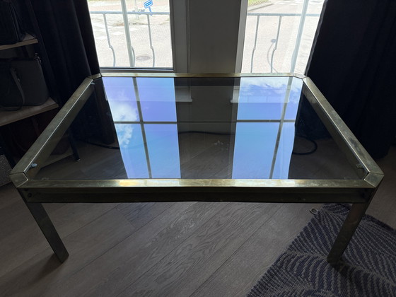 Elegante tavolino da caffè in vetro con struttura in ottone – design senza tempo
