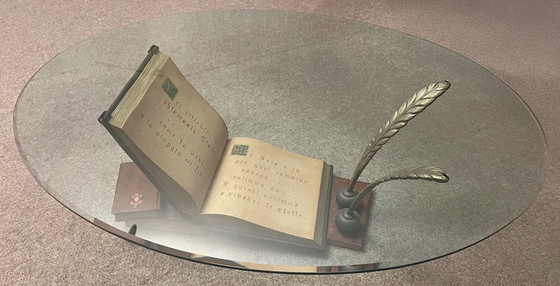 Tavolino da caffè, tavolino da soggiorno, tavolo di vetro, libri, piume