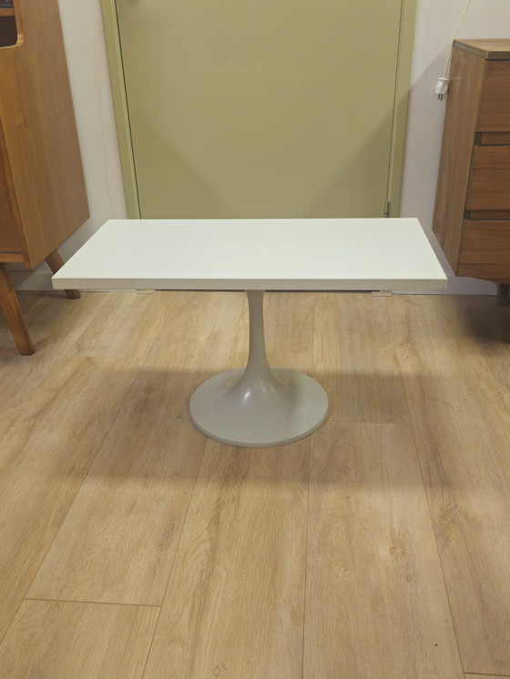 Tavolino da caffè bianco vintage con base a tulipano o a tromba.