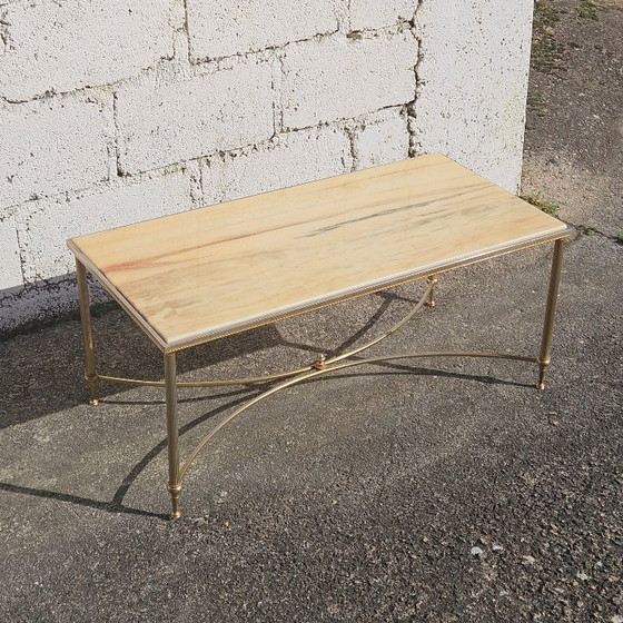 Tavolino da caffè vintage francese in marmo e ottone - Tavolo da cocktail - Tavolo da salotto - Stile Regency - Anni '70