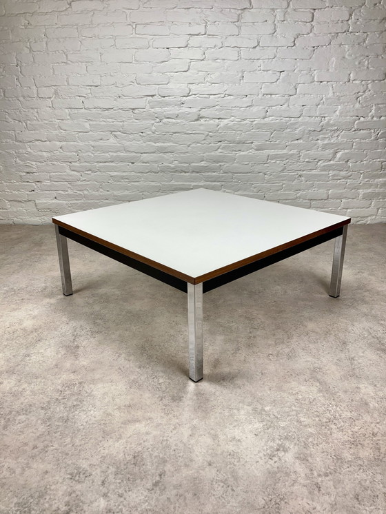 Tavolino da caffè vintage modernista, tavolino cromato bianco anni '70