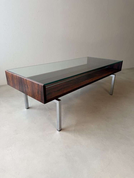 Tavolino da caffè vintage Topform in vetro, acciaio inossidabile e palissandro, anni '60