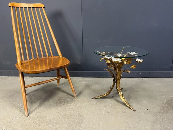 Tavolino floreale vintage hollywood regency in metallo dorato, anni '60