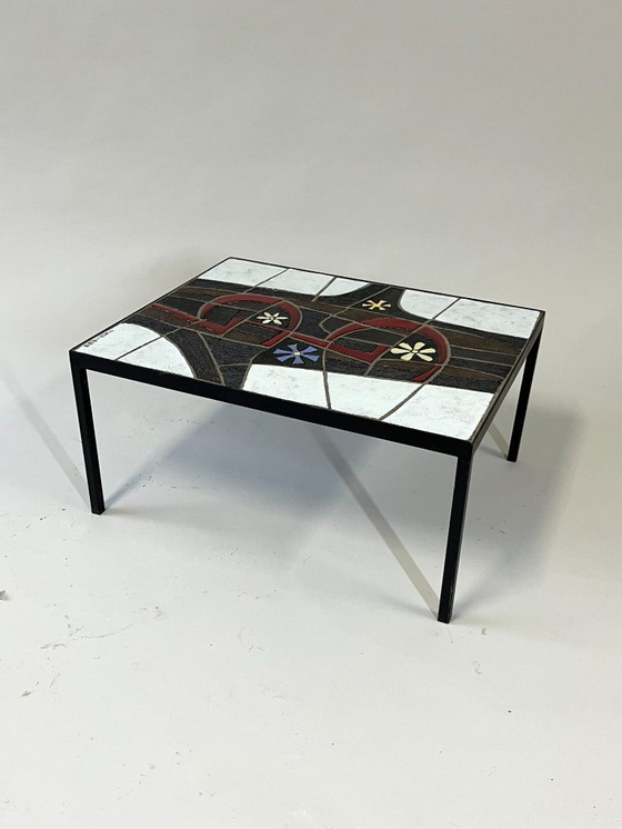 Tavolino vintage in ceramica disegnato dall'artista belga Paul Vermeire per Perignem, Belgio, negli anni '60.