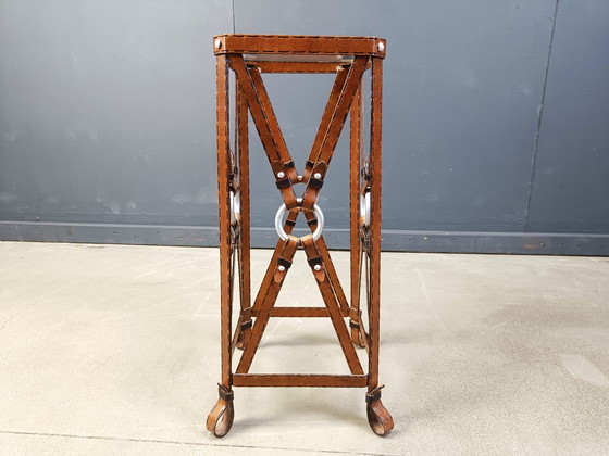 tavolino in ferro in ecopelle attribuito a jacques Adnet, anni '70