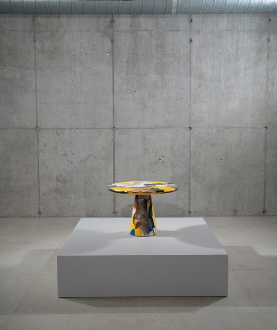 Il tavolo Meltingpot di Dirk van der Kooij offre una terza vita ai prototipi e ai test di colore realizzati con plastica riciclata dello studio Kooij. Ogni giorno, il colorista interno assembla un tavolo utilizzando materie prime preziose ed effimere. Ogni progetto nasce da un'interazione unica tra intuizione, materiale e casualità. Data la natura di questa interazione, non è possibile specificare una palette o uno schema cromatico.