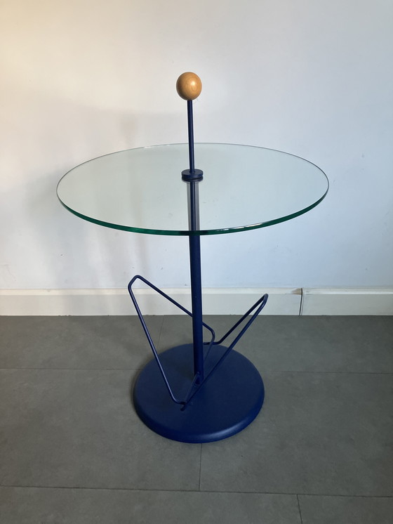 CondizioneMolto buonoColoriBlu, TrasparenteMaterialeMetallo, VetroNumero di articoli1Altezza54 cmLarghezza48 cmProfondità48 cmSegni di utilizzoGraffi