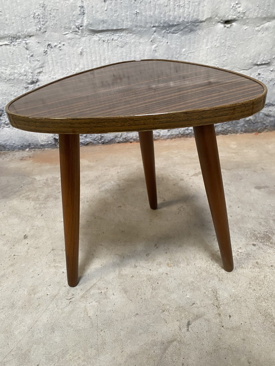 Dai un'occhiata a questo grazioso tavolino marrone, perfetto per aggiungere un tocco retrò al tuo spazio. Con il suo elegante piano in formica e le robuste gambe in legno, questo pezzo è allo stesso tempo elegante e funzionale.