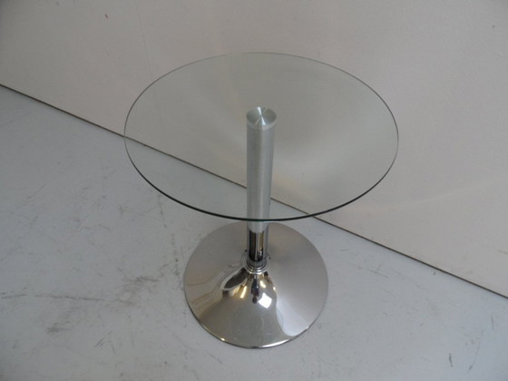 Tavolino vintage cromato con piano in vetro. In ottime condizioni.