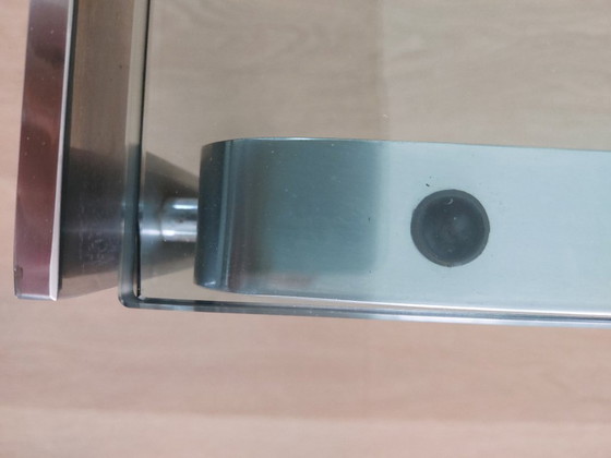 CondizioneMolto buonoColoriTrasparente, ArgentoMaterialeCromo, VetroNumero di articoli1MarchioMetaformPrimo proprietarioSìAltezza36 cmLarghezza110 cmProfondità110 cm