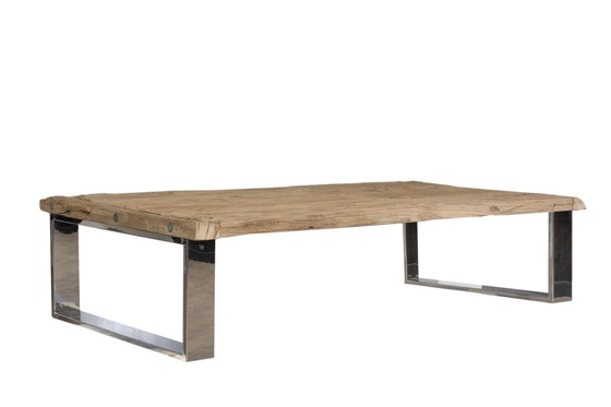 TAVOLINO DA TAVOLO IN VENDITA - Questo tavolino da caffè in rofra è in ottime condizioni. Il prezzo da nuovo era di 995 euro. Base argento/cromo. Il piano è in legno di ferrovia indonesiana. Per offerte si prega di chiamare 0654673474.