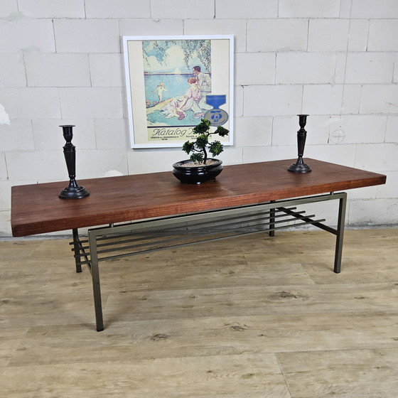 Bellissimo tavolino in teak di design danese degli anni '60 con base in metallo. Questo tavolino ha un pezzo di teak molto robusto e spesso con bellissimi segni come piano e una base di metallo elegante sotto. Questo design minimalista si adatta a qualsiasi casa moderna. (Tavolino Topform)