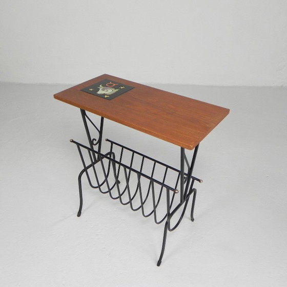 Tavolino vintage, portagiornali con piastrella di Hemiksem, anni '50