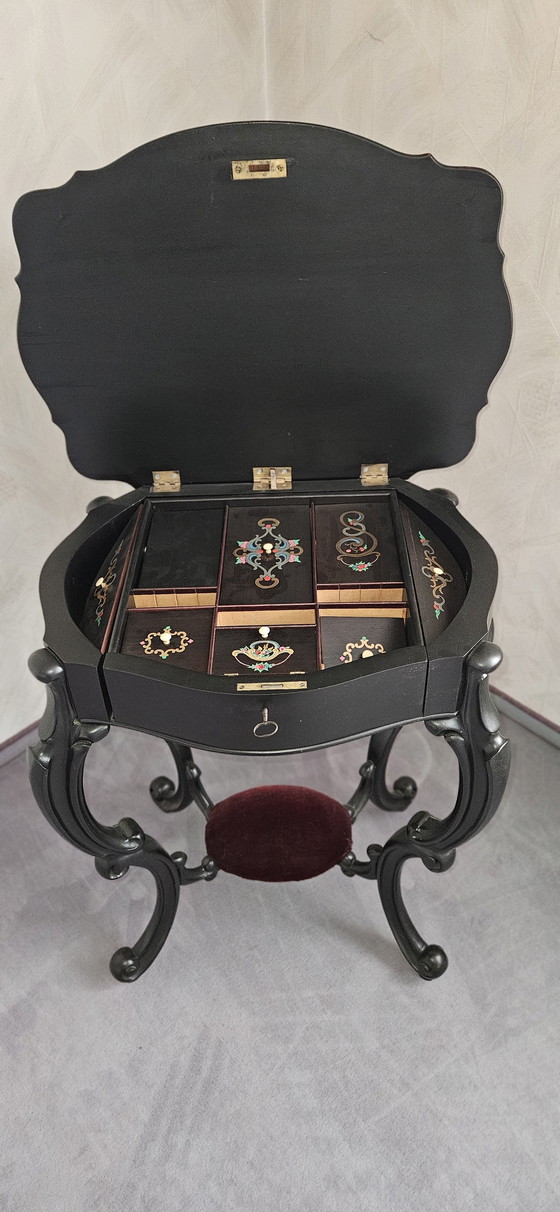 Un mobile ideale per collezionisti e amanti dell'arredamento antico. Lasciatevi incantare dalla bellezza senza tempo di questo tavolo da cucito.