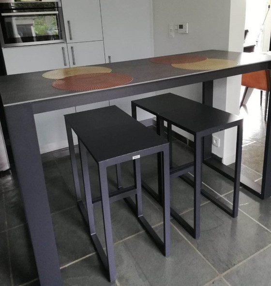 Tavolo da giardino Verato con piano in ceramica massiccia + 4 sgabelli da bar Verato