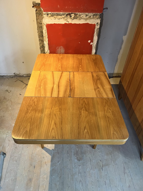 Tavolo da pranzo di metà secolo con piano allungabile, progettato da Bohumil Landsman per Jitona (Cecoslovacchia, ca. 1960-1970). Legno massello, gambe sottili e un funzionale meccanismo di piegatura rendono questo tavolo elegante e pratico.