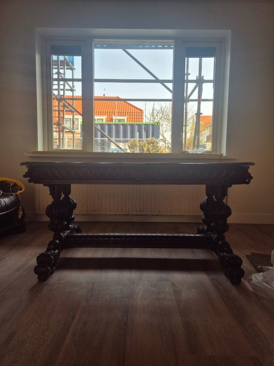 - Le intricate lavorazioni in legno e il design classico rendono questo tavolo un pezzo unico, funzionale e decorativo allo stesso tempo.