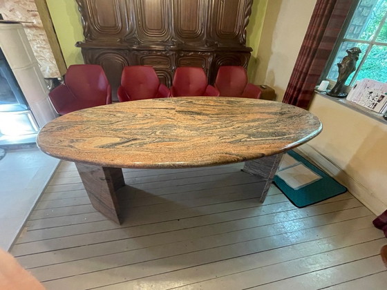 Il tavolo da pranzo in granito è stato acquistato da un'azienda di lavorazione del granito ed è stato realizzato su misura, mentre le sedie sono state acquistate in un negozio di mobili. Il tavolo e le sedie hanno 10 anni.