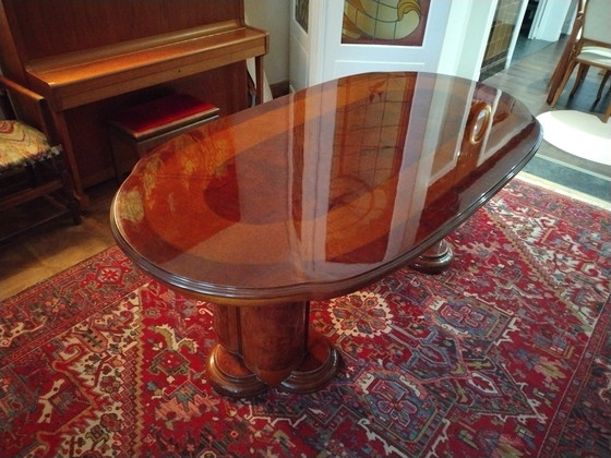Tavolo da pranzo italiano in perfetto stato in noce, abbinato a 6 sedie.