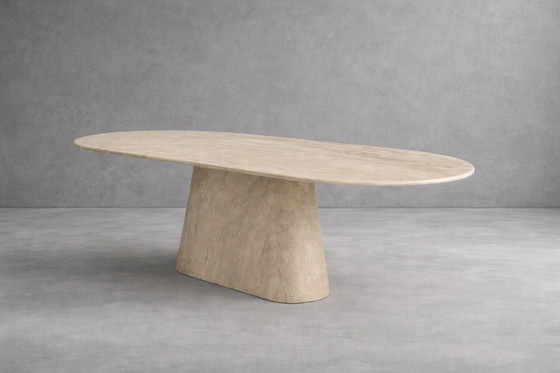 Tavolo da pranzo ovale in travertino massiccio – tavolo in pietra naturale