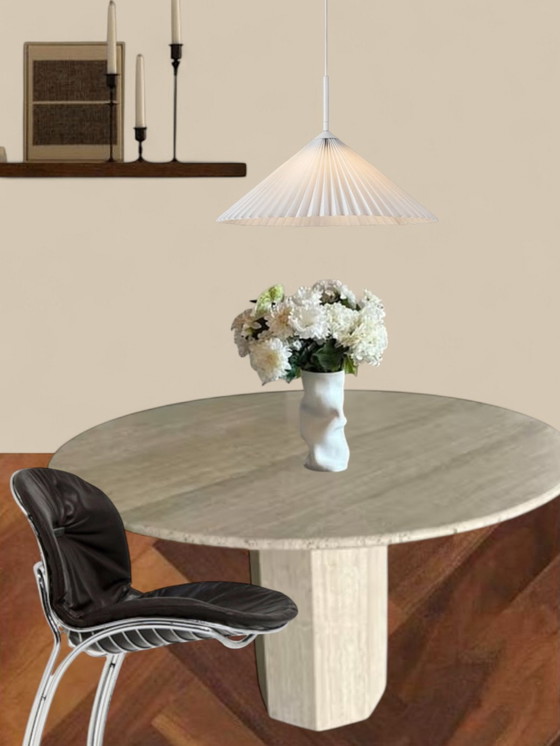 Immagina di riunirti attorno a questo splendido tavolo da pranzo rotondo in travertino, perfetto per cene intime o conversazioni vivaci. Con i suoi toni beige naturali e la finitura liscia, questo tavolo dona un tocco di eleganza e calore a qualsiasi sala da pranzo.