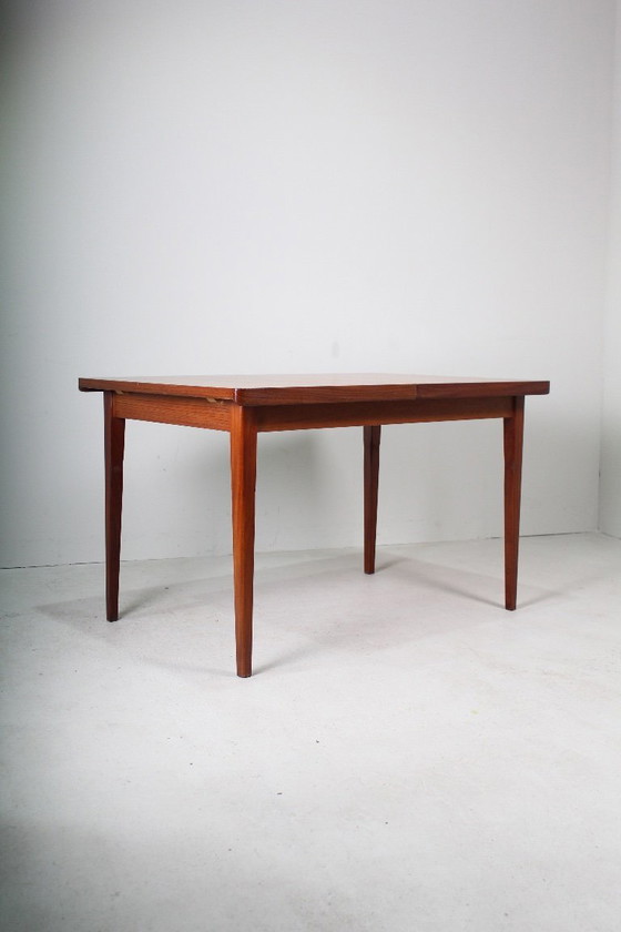 Questo tavolo allungabile risale agli anni '60 ed è di ottima qualità. È smontabile: basta svitare le gambe. Probabilmente è di origine danese, ma purtroppo non ne conosciamo il produttore.