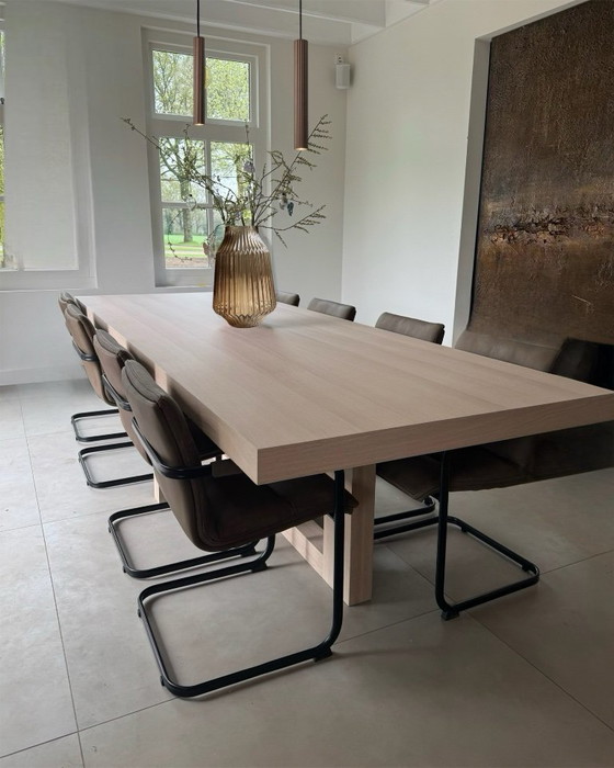 La prima foto è il tavolo in vendita. Le foto 2 e 3 sono di Keijser en Co. Il tavolo Loft di Keijser en Co. ha un impeccabile piano in rovere biondo. È perfetto per il tuo design di lusso, come un Japandi o un elegante interno di hotel. Da € 4650,00, ora € 3900,00.